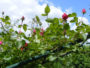 If you have not been paying attention and all of a sudden your rose is producing completely different blooms, you are not alone. Eight years ago I drove quite a distance to purchase two Joseph’s Coat climbing roses, making sure they were own root. They are tender roses so I planted them deep and removed the canes from their arch for winter and covered them. They did not bloom the first year and the following spring the canes were dead, so I pruned them out and new canes finally grew but still did not bloom. I persevered, pulled the canes down and covered them, only to find them dead again the following spring. I gave up but did not dig them out so as not to disturb the clematis planted along side. Each spring a few short canes grew. All of sudden last summer the canes grew like crazy, finally reaching the top of the arch but still did not bloom. The coming winter was extremely mild, the canes survived and low and behold buds this spring!! Well, of course you know what happened. The blooms were not Joseph’s Coat, they were Dr. Huey rootstock. When the pure red blooms opened, I checked on the common rootstocks and the commonly used Dr. Huey has much different canes and thorns than Joseph’s Coat. Since I quit paying attention to the poor rose, I have no idea when the different canes appeared.