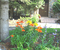 Reds, orange and yellow are hot colors that draw attention. They can be used in small doses as an accent or to draw attention to a more subtle element of the landscape. Hot colors are easily noticed at a great distance, so work great for the far corners. Or if you just love the colors and their hot tropical look go ahead and use one as a dominant color in your design, or use the whole family throughout. Soften and balance a hot color scheme with neutrals and complimentary colors. Complimentary colors are directly across from each other on the color wheel, but that is very simplistic. Colors are also complimentary in design as you move slightly away from the direct compliment. They work well together and contrast each other. Evergreens, particularly those in a more blue green tone, are an excellent backdrop for hot orange and red. Red blooms work beautifully with blue blooms, orange and yellow blooms with blue or purple.
