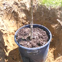 Container grown trees were originally planted in the container when very young. The root system remains intact until you plant it, inflicting none of the stress endured by being dug up and the roots cut and exposed. This gives container grown trees a slight advantage for a successful transplant. However, a tree growing too long in its’ container may become root bound, with the roots growing round and round in the container. The roots will need to be spread out, most likely will need to be cut to accomplish that. The roots will recover, but the tree has lost the “container grown advantage”.